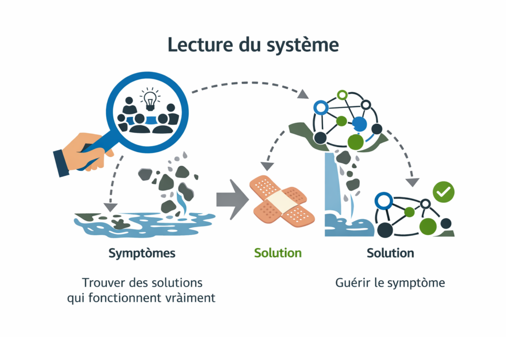 ainsi que les structures systémiques — règles formelles et informelles, modes de décision, équilibres et boucles de régulation.